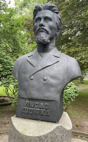 Dr. Vincas Kudirka (1858 – 1899). Kudirka was a physician, poet, writer, critic, translator and the author of the Lithuanian national anthem and its music. He was an editor of a clandestine newspaper, Varpas (the Bell), and was active in the Lithuanian national rebirth.